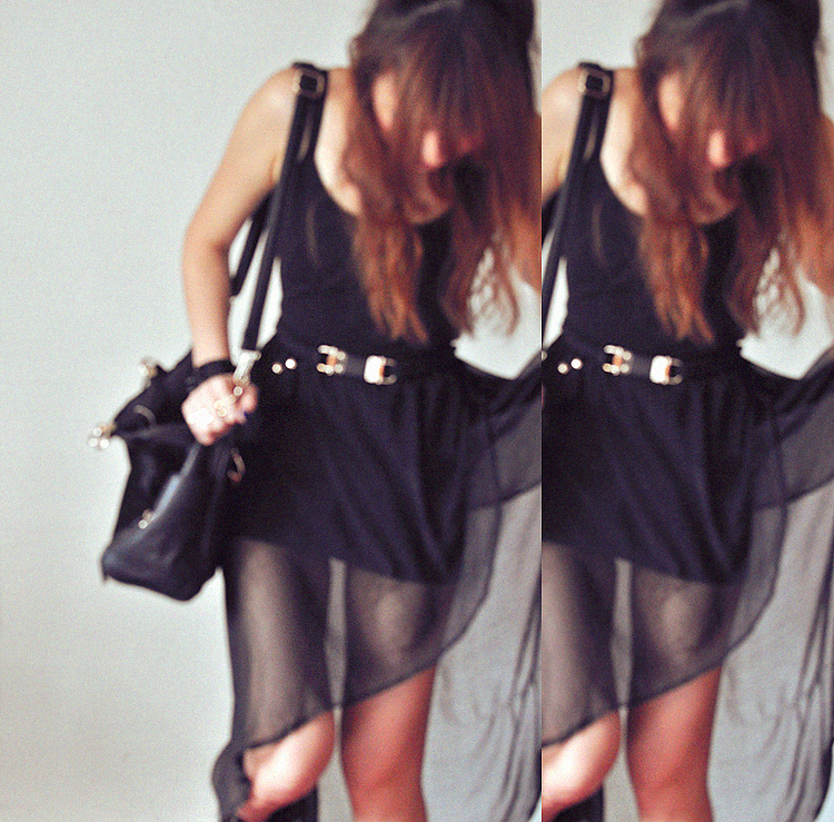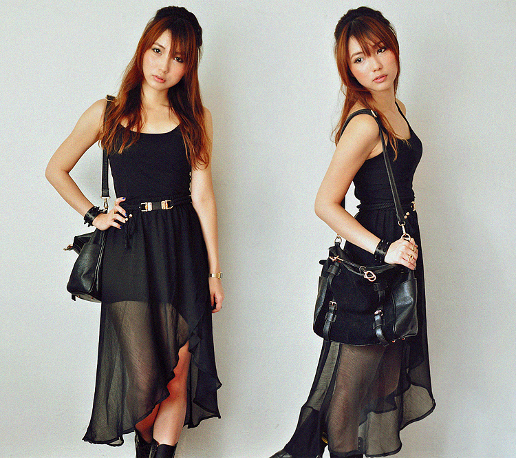 Been into black and black outfits lately, mainly because i gained some weight :p So this combination of long ethereal skirt and ropey belt certainly comes in at the right time! This skirt is definitely a must-have this summer! The chiffon material is very light so don't you worry about wearing it under the hot weather in Singapore. Anyways most of us are indoor with air-con blasting away all the time :) It is a little sexy so you can balance it up with a bit of attitude by matching it with a pair of Dr. Mart boots.
